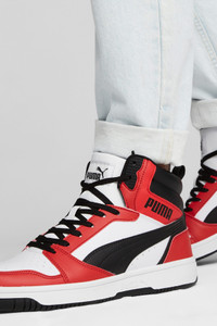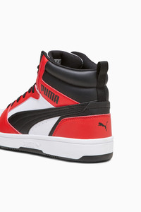 PRODUCT STORY Injecting PUMA DNA with a retro inspiration to this new basketball era, the Rebound sneakers don a wear-resistant upper, high-top construction and a soft sockliner for suprior cushioning that way you can attack your day-to-day in comfort and style. FEATURES & BENEFITS - The upper of this shoe is made with at least 20% recycled materials and the bottom is made with at least 10% recycled materials, as a step toward a better future - SOFTFOAM+: Step-in comfort sockliner designed to provide soft cushioning thanks to its extra thick heel DETAILS - Style: 392326_04 - Color: PUMA White-PUMA Black-For All Time Red - Mid boot - Synthetic upper - SOFTFOAM+ sockliner - Rubber midsole - Rubber outsole