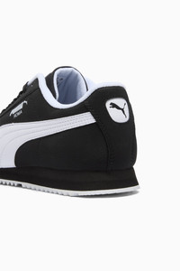 PRODUCT STORY We're bringing back an icon. First introduced in 1968, the PUMA Roma was originally designed to celebrate Italy's Euro Cup victory and quickly became a sport-to-street sensation. Now, over 50 years later, the Roma returns with its classic design and gum rubber sole. This version, the Roma 24, features a cushioned EVA midsole and a wider overall shape for all-day comfort. DETAILS - Style: 400671_02 - Color: PUMA Black-PUMA White - Width: Regular - Toe Type: Rounded - Fastener: Laces - Synthetic upper - Heel type: Flat - Lining: Textile - Comfortable EVA midsole - Outsole: Rubber MATERIAL INFORMATION - Outsole: 100% Rubber - Upper: 97.62% Synthetic, 2.38% Textile - Lining: 100% Textile
