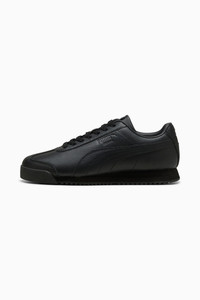 PRODUCT STORY Straight out of the PUMA 1968 archives comes the PUMA Roma. This lightweight trainer comes fully equipped with a thick, padded tongue, orthopaedic arch supports and EVA midsoles for premium comfort wherever you go. FEATURES & BENEFITS - ProFoam: Lightweight EVA designed to cushion your landing and propel your next step - PUMA's leather products support responsible manufacturing via the Leather Working Group. www.leatherworkinggroup.com DETAILS - Style: 396868_14 - Color: PUMA Black-PUMA Black - Leather and synthetic upper - Synthetic eyestay, toe, tongue and heel overlays - Synthetic lining - Textile sockliner - Rubber and ProFoam midsole - Rubber outsole - PUMA branding details