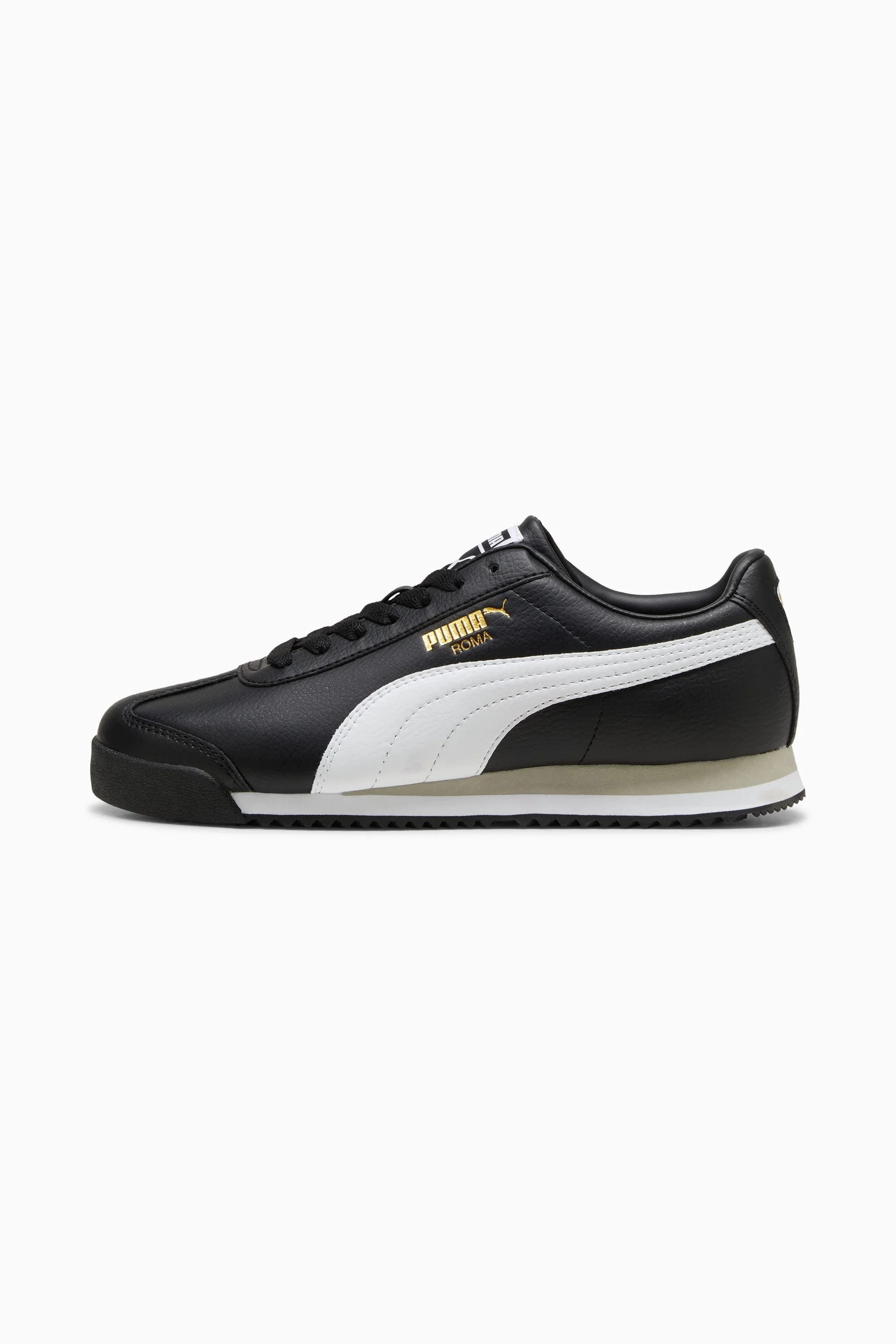 PRODUCT STORY Straight out of the PUMA 1968 archives comes the PUMA Roma. This lightweight trainer comes fully equipped with a thick, padded tongue, orthopaedic arch supports and EVA midsoles for premium comfort wherever you go. FEATURES & BENEFITS - ProFoam: Lightweight EVA designed to cushion your landing and propel your next step - PUMA's leather products support responsible manufacturing via the Leather Working Group. www.leatherworkinggroup.com DETAILS - Style: 396868_02 - Color: PUMA Black-PUMA White-Smokey Gray - Leather and synthetic upper - Synthetic eyestay, toe, tongue and heel overlays - Synthetic lining - Textile sockliner - Rubber and ProFoam midsole - Rubber outsole - PUMA branding details