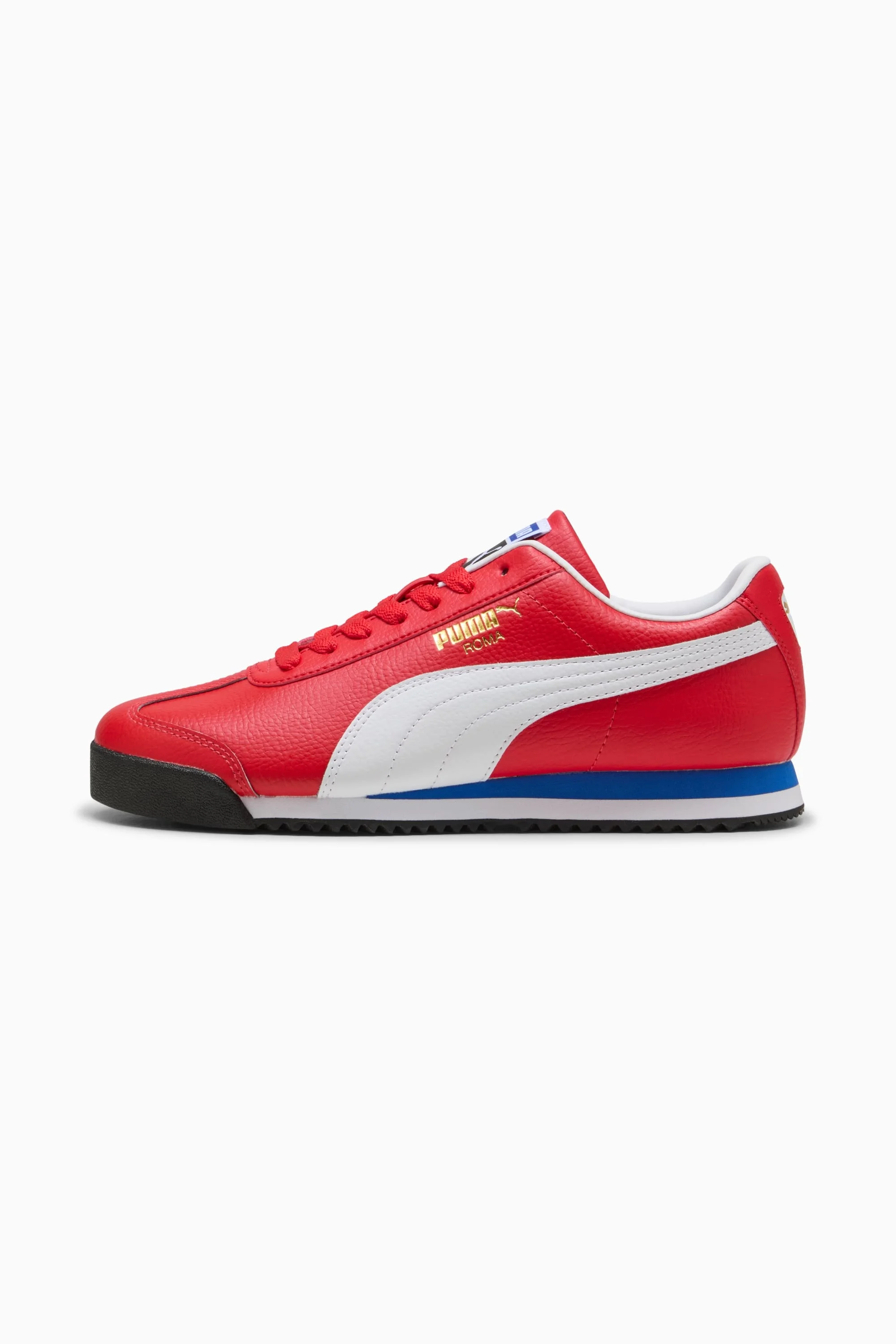 PRODUCT STORY Straight out of the PUMA 1968 archives comes the PUMA Roma. This lightweight trainer comes fully equipped with a thick, padded tongue, orthopaedic arch supports and EVA midsoles for premium comfort wherever you go. FEATURES & BENEFITS - ProFoam: Lightweight EVA designed to cushion your landing and propel your next step - PUMA's leather products support responsible manufacturing via the Leather Working Group. www.leatherworkinggroup.com DETAILS - Style: 396868_17 - Color: For All Time Red-PUMA White - Leather and synthetic upper - Synthetic eyestay, toe, tongue and heel overlays - Synthetic lining - Textile sockliner - Rubber and ProFoam midsole - Rubber outsole - PUMA branding details