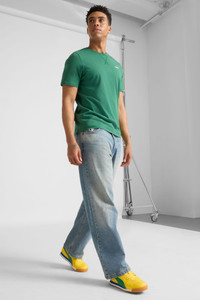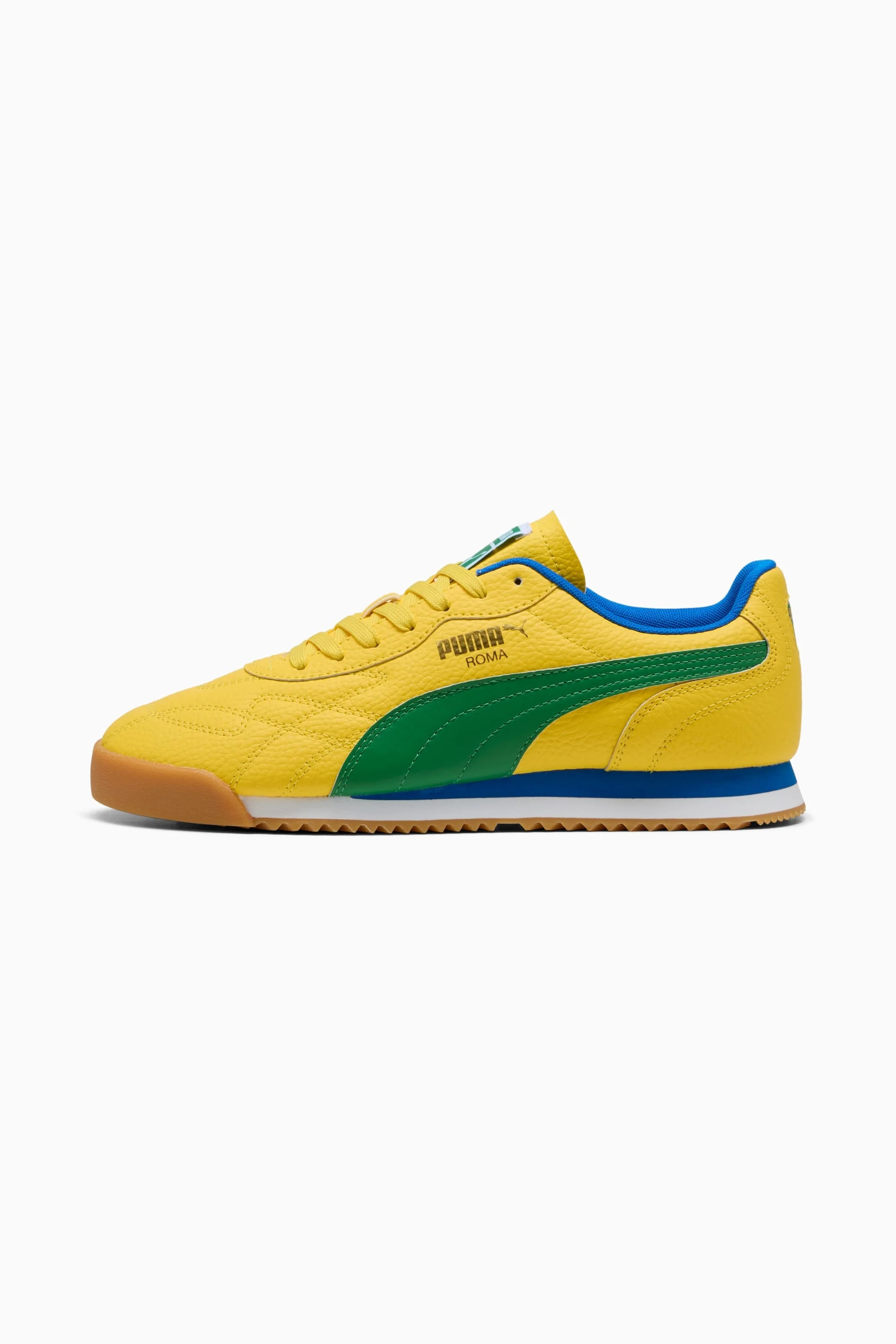 PRODUCT STORY Celebrate heritage with a modern twist. Featuring a leather base with football-inspired stitching, synthetic leather formstrip, and iconic PUMA branding. The mesh sockliner and cushioned tongue ensure every step is a blend of style and comfort. Perfect for your everyday adventures. DETAILS - Style: 397720_04 - Color: Pele Yellow-Archive Green-PUMA Team Royal - Leather base with football deco stitching on vamp - Leather eyestay and heel overlays - Mesh lining - Mesh sockliner - PUMA branding details MATERIAL INFORMATION - Sockliner: 100% Textile - Outsole: 100% Rubber - Upper: 97.75% Leather - cow, 2.25% Textile - Lining: 100% Textile