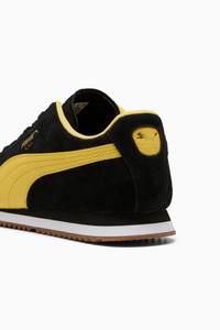 PRODUCT STORY We're bringing back an icon. Born in 1968, the PUMA Roma was originally created to celebrate the Italian Euro Cup win – and become a sport-turned-street sensation overnight. Today, over 50 years later, the Roma is back with its signature sleek look and gum rubber sole. This version features a suede upper with suede overlays, a thick padded tongue, and orthopaedic arch supports. FEATURES & BENEFITS - PUMA's leather products support responsible manufacturing via the Leather Working Group: www.leatherworkinggroup.com - ProFoam: Lightweight EVA designed to cushion your landing and propel your next step DETAILS - Style: 398635_06 - Color: PUMA Black-Sunny Yellow - Regular fit - Suede upper - Suede and synthetic overlays - Mesh lining - Lace closure - EVA midsole - Suede PUMA Formstrip with tumbled finish - PUMA branding details