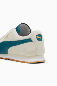 PRODUCT STORY We're bringing back an icon. Born in 1968, the PUMA Roma was originally created to celebrate the Italian Euro Cup win – and become a sport-turned-street sensation overnight. Today, over 50 years later, the Roma is back with its signature sleek look and gum rubber sole. This version features a suede upper with suede overlays, a thick padded tongue, and orthopaedic arch supports. FEATURES & BENEFITS - PUMA's leather products support responsible manufacturing via the Leather Working Group: www.leatherworkinggroup.com - ProFoam: Lightweight EVA designed to cushion your landing and propel your next step DETAILS - Style: 398635_02 - Color: Alpine Snow-Cold Green-Gum - Regular fit - Suede upper - Suede and synthetic overlays - Mesh lining - Lace closure - EVA midsole - Suede PUMA Formstrip with tumbled finish - PUMA branding details