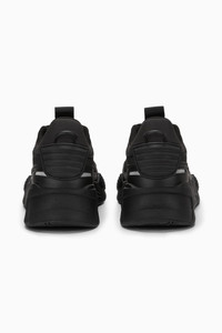PRODUCT STORY The RS-X is back. The future-retro silhouette of this sneaker returns with a progressive aesthetic and angular details, complete with nubuck and suede overlays. The combo’s all about a disruptive design to showcase your disruptive style, and this version triples that disruption. FEATURES & BENEFITS - Running System: PUMA's comfortable cushioning technology celebrates the reinvention of a unique moment and movement in culture DETAILS - Style: 391928_01 - Color: PUMA Black-PUMA Black - Synthetic upper with leather overlays - Lightweight PU midsole - Rubber outsole - PUMA branding details MATERIAL INFORMATION - Midsole: 100% Synthetic - Sockliner: 100% Textile - Outsole: 100% Rubber - Upper: 57% Synthetic, 22% Leather - cow, 14% Textile, 7% Rubber - Lining: 100% Textile