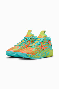 PRODUCT STORY Zoinks! LaMelo Ball’s signature shoe, the MB.04, gets a groovy redesign based off of everyone’s favorite cartoon car: The Mystery Machine. The MB.04 SCOOBY-DOO is engulfed in alien tentacles with Melo sayings hidden in the design. Complete with a supportive double-layered mesh upper and NITROFOAM™ cushioning for on-court power, this pair also features the iconic blue, green, and orange colors of the Mystery Machine and unique Scooby-Doo graphics on the heels. FEATURES & BENEFITS - NITRO™: Advanced nitrogen-infused foam designed to provide superior responsiveness and cushioning in a lightweight package - PUMAGRIP: Durable performance rubber compound designed for all-surface traction - 5D PRINTED UPPER: A raised, multi-layered design takes over the shoe like alien tentacles. - MELO DNA: Melo phrases like 1 OF ONE and RARE are hidden throughout the design. - UNIQUE HEEL LOGO: The heel includes custom graphics of Scooby-Doo dribbling. - OUTSOLE DETAILS: The sole features a hovering spaceship, NOT FROM HERE and RARE wording, and flames at the heel. DETAILS - Style: 310776_01 - Color: Aquatic-Lime Smash-Heat Fire - Regular fit - Engineered mesh upper - TPU heel counter - LaMelo branding details on tongue - PUMA branding details MATERIAL INFORMATION - Midsole: 100% Synthetic - Sockliner: 100% Textile - Outsole: 100% Rubber - Upper: 55% Textile, 45% Synthetic - Lining: 100% Textile