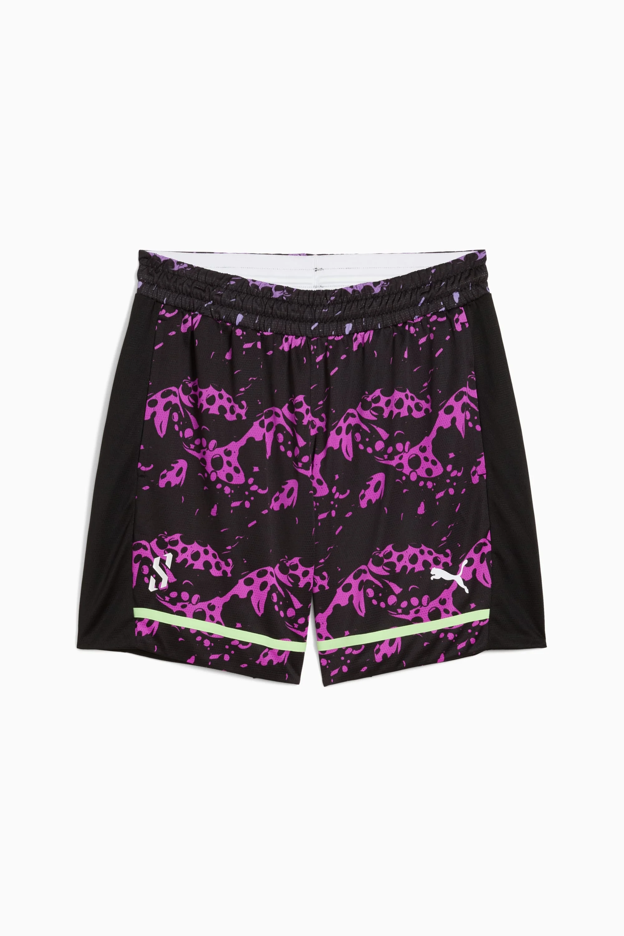 PRODUCT STORY Rep Scoot Henderson's style in the latest basketball shorts. FEATURES & BENEFITS - Made with at least 20% recycled cotton. DETAILS - Style: 631671_01 - Color: PUMA Black-Lavender Alert-Pure Magenta - Relaxed fit MATERIAL INFORMATION - Lining: 100% polyester - Shell: 100% polyester - Sidepanel: 100% polyester - Pocket Bag: 100% polyester