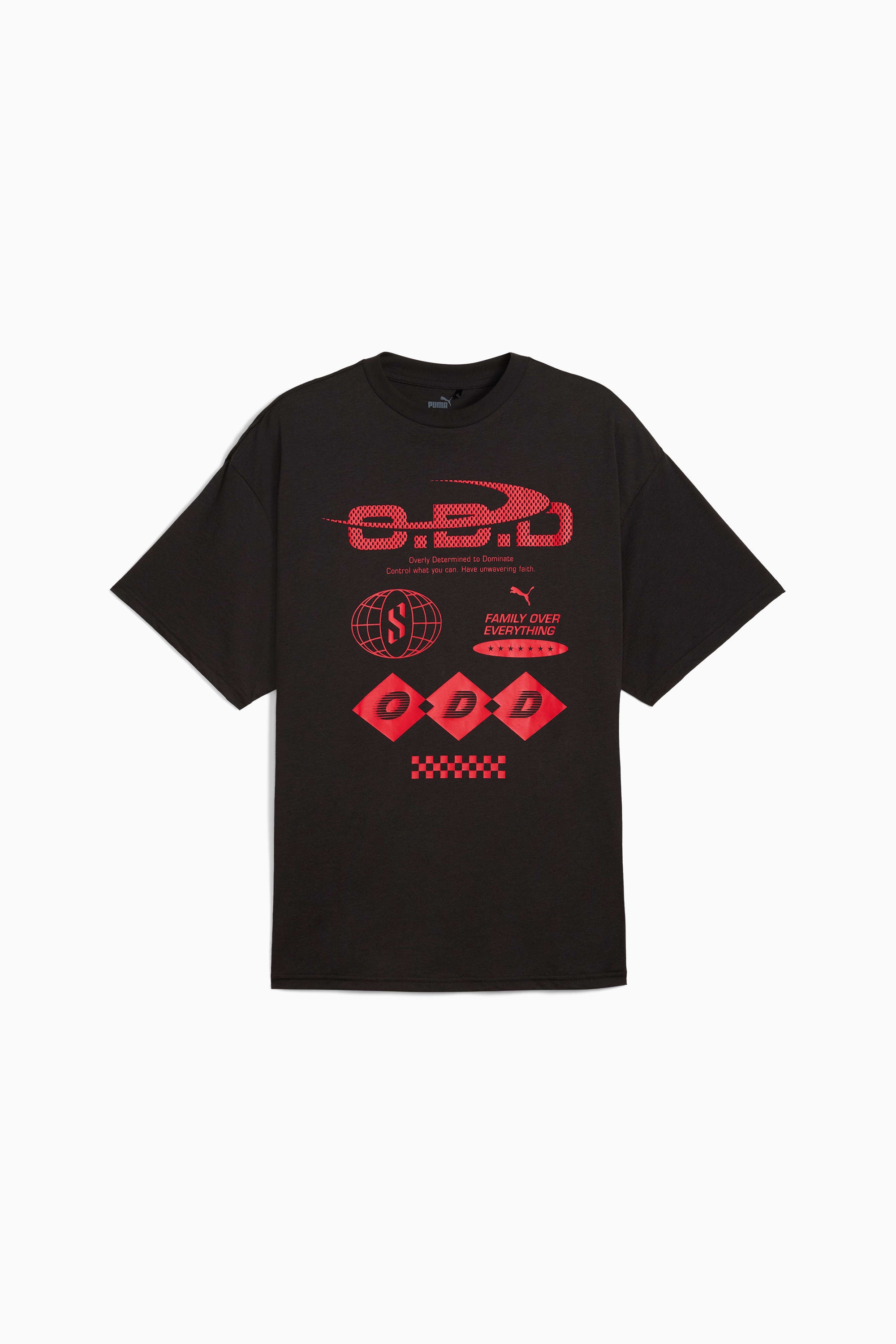 PRODUCT STORY Take to the court in Scoot Henderson's signature tee. Built for dominating the hardwood, this bold design lets you channel the swagger of the star point guard with every crossover and slam dunk. When the buzzer sounds, you'll have led your team to victory in style. FEATURES & BENEFITS - dryCELL: Performance technology designed to wick moisture from the body and keep you free of sweat during exercise DETAILS - Style: 629213_01 - Color: PUMA Black - Oversized fit - 145 gsm, single jersey - Crew neck - Short sleeve - PUMA branding details MATERIAL INFORMATION - SHELL: 50% polyester, 25% cotton, 25% viscose - RIB: 70% cotton, 30% polyester