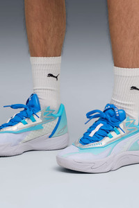 PRODUCT STORY The latest edition of Scoot Henderson’s signature shoe has arrived: the Scoot Zeros II Crystal. This silver, blue, and teal drop was designed in honor Scoot’s biggest inspiration – his mother Crystal. Inspired by his personal mantra (O.D.D – Overly Determined to Dominate) and his shifty style of play, the Scoot Zeros II Caution features a sleek, streamlined design NITROFOAM™ cushioning and a high-performance rubber outsole for end-to-end play. FEATURES & BENEFITS - NITROFOAM™: Advanced nitrogen-infused foam designed to provide superior responsiveness and cushioning in a lightweight package DETAILS - Style: 312226_01 - Color: Peaceful Blue-Bright Aqua - Width: Regular - Toe Type:Rounded - Fastener: Laces - Heel type: Flat - PUMA branding details MATERIAL INFORMATION - Midsole: 100% Synthetic - Sockliner: 100% Textile - Outsole: 100% Rubber - Upper: 58.57% Synthetic, 41.43% Textile - Lining: 100% Textile