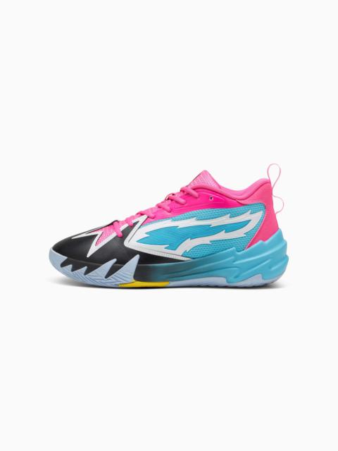 PRODUCT STORY Inspired by Scoot's fast and disruptive play style on the court, this shoe takes design elements from our Jaws branding with a jaw-like rubber wrap-up on the outsole embodying Scoot's fierceness and tenacity on the court. It's the very first signature basketball shoe for Scoot Henderson and is built for his quickness, speed, and determination thanks to the high-rebound EVA midsole, an anti-slip traction pattern on the outsole and a lightweight upper. It's all marked in Scoot's signature logo. FEATURES & BENEFITS - PROFOAM: Lightweight EVA designed to cushion your landing and propel your next step DETAILS - Style: 309837_02 - Color: Bright Aqua-Ravish - Synthetic, mesh, and textile upper for a lightweight feel - Synthetic heel cap with Scoot's logo embroidered - Formstrip lockdown support - PROFOAM EVA midsole - Full coverage rubber outsole with an anti-slip traction pattern - Scoot branding MATERIAL INFORMATION - Midsole: 100% Synthetic - Sockliner: 100% Textile - Outsole: 100% Rubber - Upper: 52% Synthetic, 48% Textile - Lining: 100% Textile