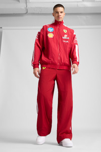 PRODUCT STORY Two legends, twenty years of burning rubber. Celebrate the twentieth anniversary of PUMA for SCUDERIA FERRARI HP with the 2025 Replica Collection. These oversized pants, featuring PUMA's signature T7 stripes, capture the elegance and performance of Scuderia Ferrari. Featuring the iconic shield logo, elasticated hems, and zipped side pockets, they're designed for those who live for speed. Join the team with PUMA and feel the thrill. Tifosi, welcome to the crew. FEATURES & BENEFITS - Made with at least 30% recycled materials. DETAILS - Style: 713573_01 - Color: Dark Cherry - Regular fit - Plain weave - Regular length - Medium rise - Zipped pockets - Scuderia Ferrari and PUMA branding details