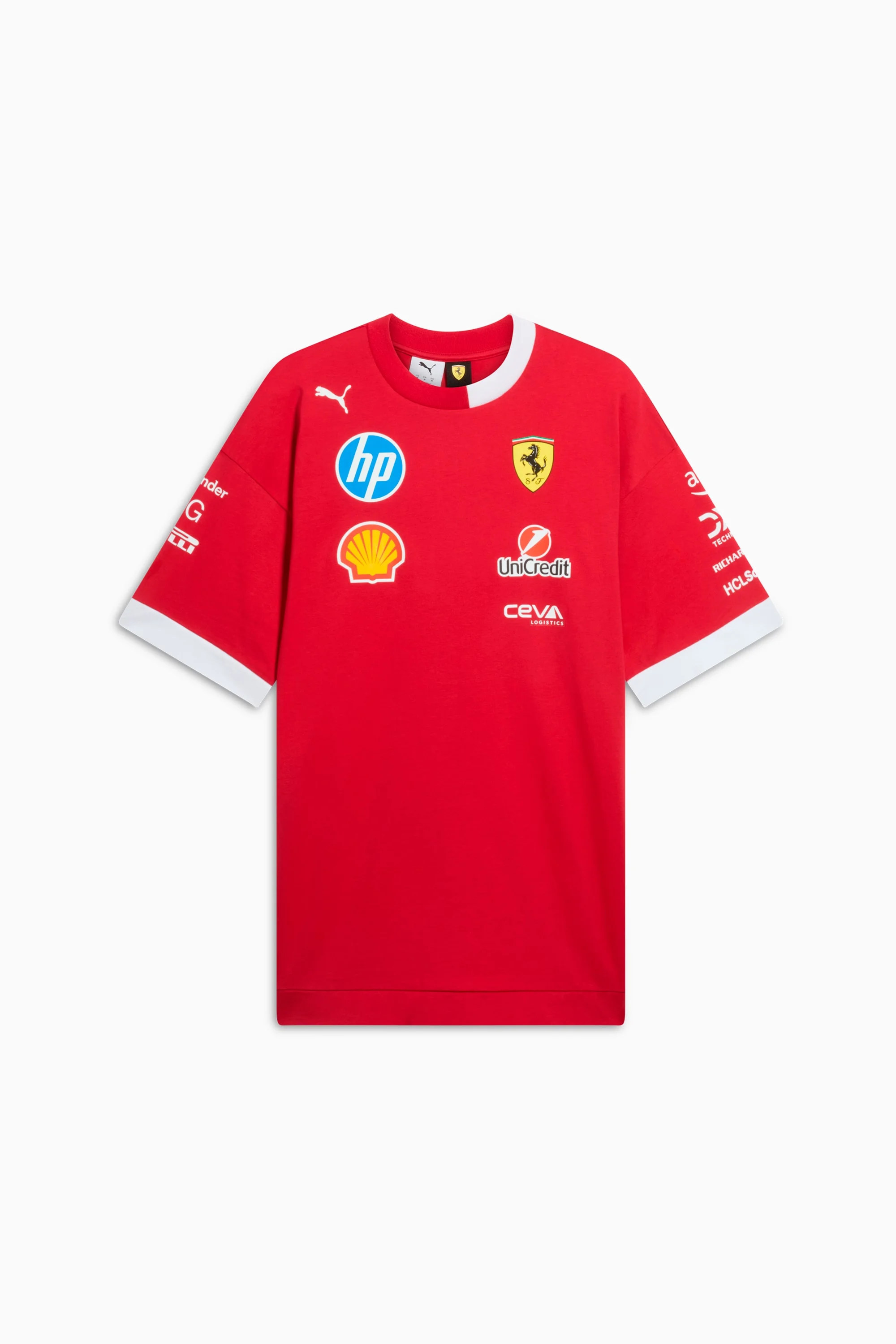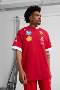 PRODUCT STORY Two legends, twenty years of burning rubber. Celebrate the twentieth anniversary of PUMA for SCUDERIA FERRARI HP with the 2025 Replica Collection. Taking inspiration from the personal style of the 2025 Scuderia Ferrari HP driver line- up, this oversized fit tee captures the essence of performance and elegance. Featuring an oversized fit and silicone shield logo, it's a bold statement piece. Tifosi, welcome to the crew. FEATURES & BENEFITS - Made with at least 20% recycled cotton DETAILS - Style: 713571_01 - Color: Dark Cherry - Oversized fit - Single jersey - Regular length - Crew neck - Short sleeves - Scuderia Ferrari branding details - PUMA branding details - 100% Cotton MATERIAL INFORMATION - SHELL: 100% cotton - COLLAR: 77% cotton, 23% polyester
