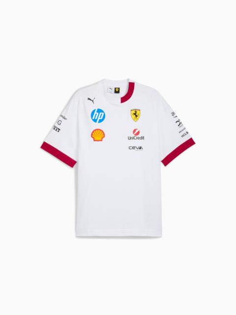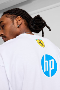 PRODUCT STORY Two legends, twenty years of burning rubber. Celebrate the twentieth anniversary of PUMA for SCUDERIA FERRARI HP with the 2025 Replica Collection. Taking inspiration from the personal style of the 2025 Scuderia Ferrari HP driver line- up, this oversized fit tee captures the essence of performance and elegance. Featuring an oversized fit and silicone shield logo, it's a bold statement piece. Tifosi, welcome to the crew. FEATURES & BENEFITS - Made with at least 20% recycled cotton DETAILS - Style: 713571_02 - Color: PUMA White - Oversized fit - Single jersey - Regular length - Crew neck - Short sleeves - Scuderia Ferrari branding details - PUMA branding details - 100% Cotton MATERIAL INFORMATION - Shell: 100% cotton - Collar: 100% polyester