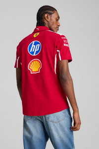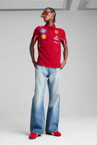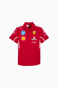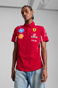 PRODUCT STORY Embrace the fusion of performance and elegance with this sleek polo. Featuring heat transfer sponsor logos, a 3-button placket, and the new darker red Scuderia Ferrari HP team color, it's perfect for showing your support to the most famous horse in the motorsport world. Join the team and make a statement with PUMA. FEATURES & BENEFITS - Made with at least 30% recycled materials DETAILS - Style: 763944_01 - Color: Dark Cherry - Regular fit - Single jersey material - Regular length - Standard polo collar - 3-button placket - Short sleeves - Sponsor logo embroideries - Heat transfer sponsor logo application - PUMA and Scuderia Ferrari branding details MATERIAL INFORMATION - INSERTS: 100% polyester - SHELL: 100% cotton
