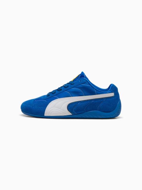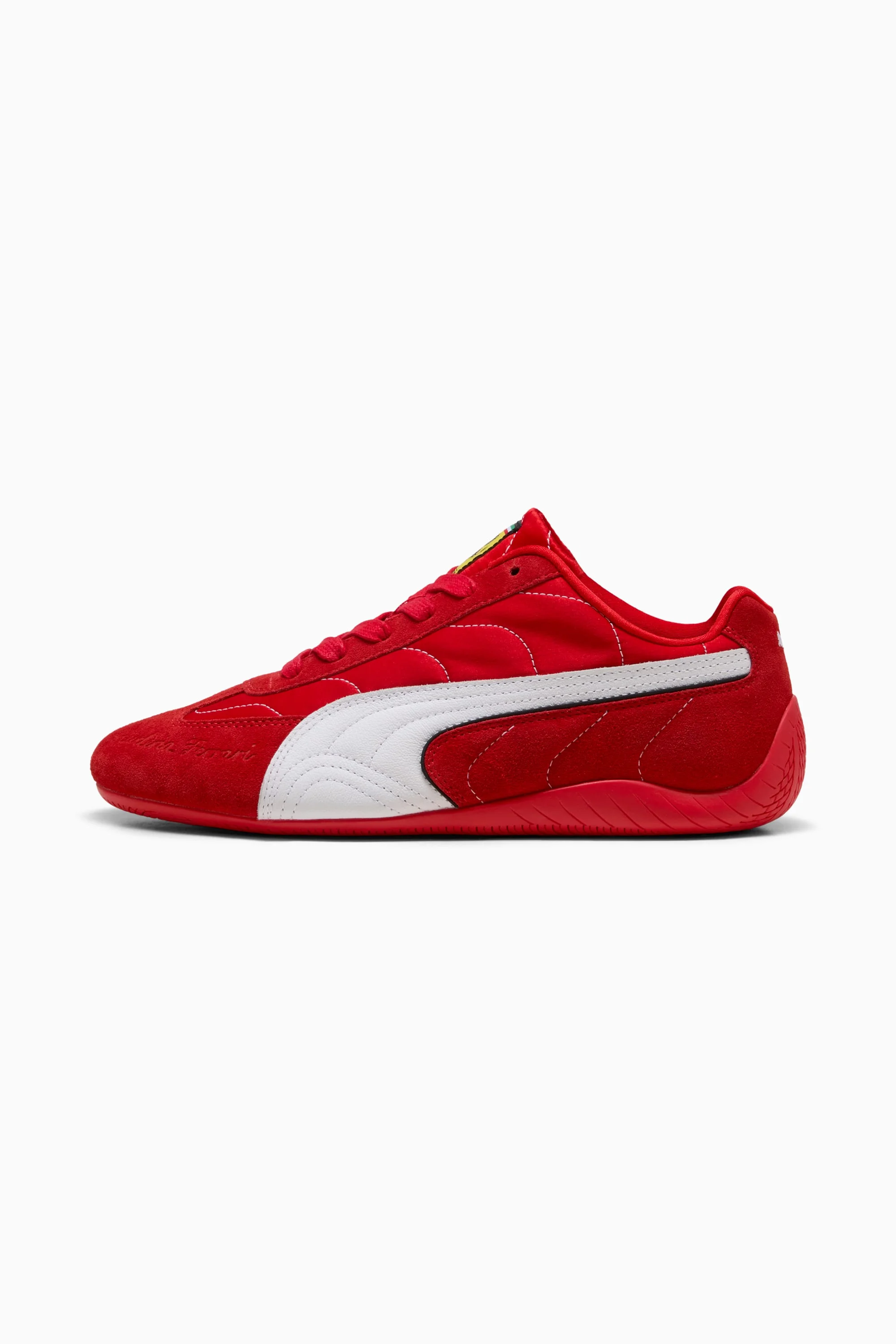 PRODUCT STORY Lauda’s first title? Monza, 1975. 50 years on, Hamilton and Leclerc take on Scuderia Ferrari HP’s home track as teammates for the very first time. To mark the moment, this limited-edition drop draws inspiration from Lauda’s race suits, complete with vintage logos, throwback lettering, and a few retro nods. Think jackets, tees, and caps for fans who know it’s all about those firsts, every time the lights go out. FEATURES & BENEFITS - The upper of the shoes is made with at least 20% recycled materials DETAILS - Style: 309077_01 - Color: Rosso Corsa-PUMA White - Width: Regular - Toe type: Rounded - Fastener: Laces - Main material of upper: Suede and textile mix - Heel type: Flat - Lining: Textile - Outsole: Rubber - Stitching details inspired by racing suits - PUMA and Scuderia Ferrari HP branding details MATERIAL INFORMATION - Sockliner: 100% Textile - Outsole: 100% Rubber - Upper: 77.37% Leather - cow, 22.63% Textile - Lining: 100% Textile