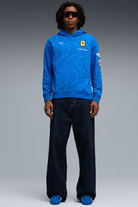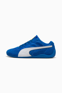 PRODUCT STORY Lauda’s first title? Monza, 1975. 50 years on, Hamilton and Leclerc take on Scuderia Ferrari HP’s home track as teammates for the very first time. To mark the moment, this limited-edition drop draws inspiration from Lauda’s race suits, complete with vintage logos, throwback lettering, and a few retro nods. Think jackets, tees, and caps for fans who know it’s all about those firsts, every time the lights go out. FEATURES & BENEFITS - The upper of the shoes is made with at least 20% recycled materials DETAILS - Style: 309077_02 - Color: Steer Blue-PUMA White - Width: Regular - Toe type: Rounded - Fastener: Laces - Main material of upper: Suede and textile mix - Heel type: Flat - Lining: Textile - Outsole: Rubber - Stitching details inspired by racing suits - PUMA and Scuderia Ferrari HP branding details MATERIAL INFORMATION - Sockliner: 100% Textile - Outsole: 100% Rubber - Upper: 77.37% Leather - cow, 22.63% Textile - Lining: 100% Textile