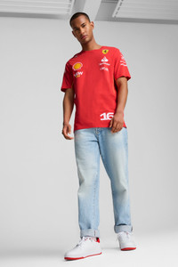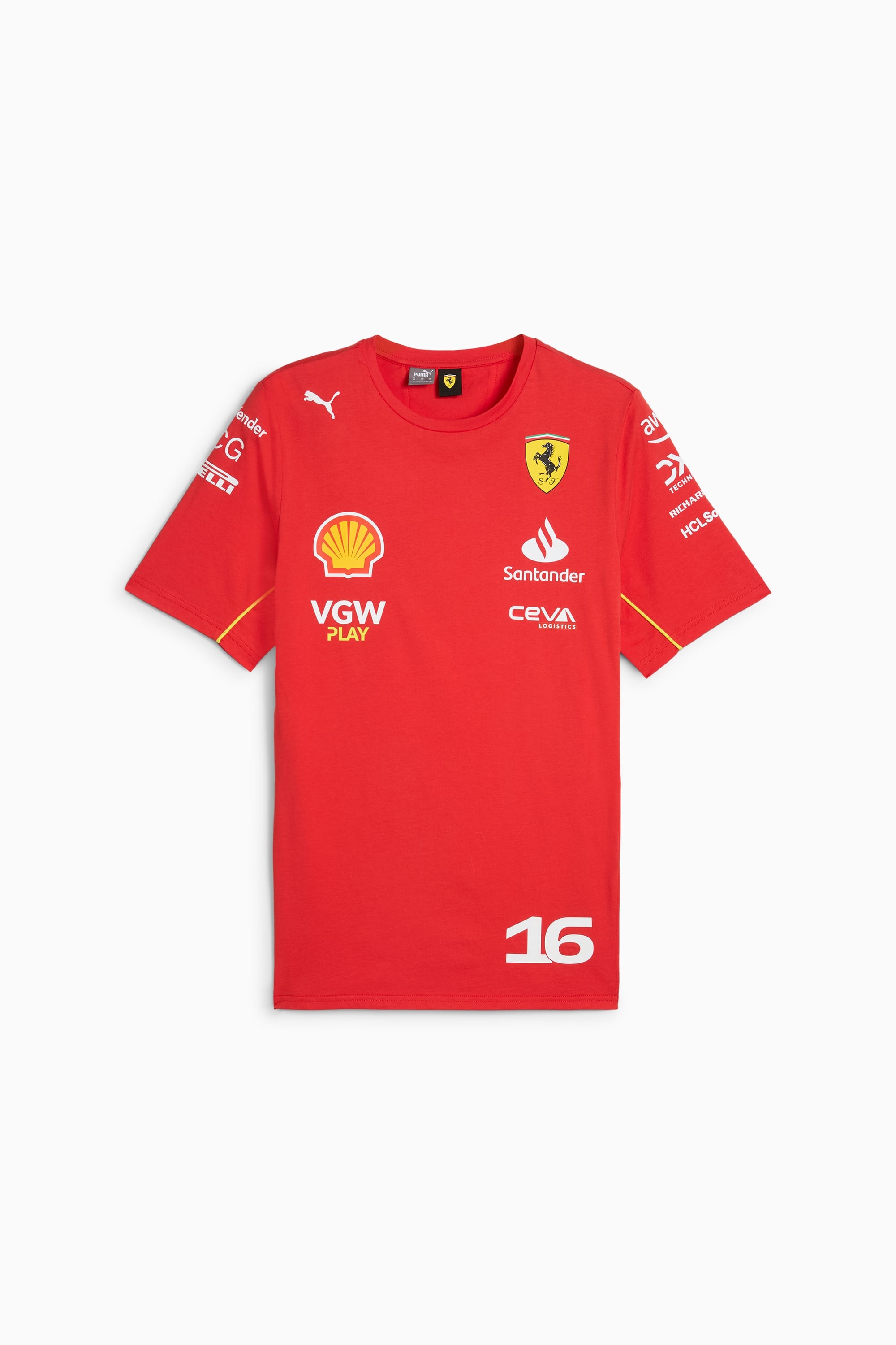 PRODUCT STORY If you’re in thde pitlane, the grandstand or the city, look like part of the Scuderia Ferrari team. Here, the Rosso Corsa and black bring that modern twist to this era of racing, while it reps the Scuderia Ferrari logo on the front, so you can show your support for the marque. This special-edition shirt honors driver Charles Leclerc and is decked out with his specific details like his driver number and signature. DETAILS - Style: 763605_01 - Color: Burnt Red - Regular fit - 160 gsm, single jersey - Crew neck - Short sleeves - Driver number and signature graphic - Scuderia Ferrari logo MATERIAL INFORMATION - SHELL: 100% cotton - COLLAR: 100% cotton