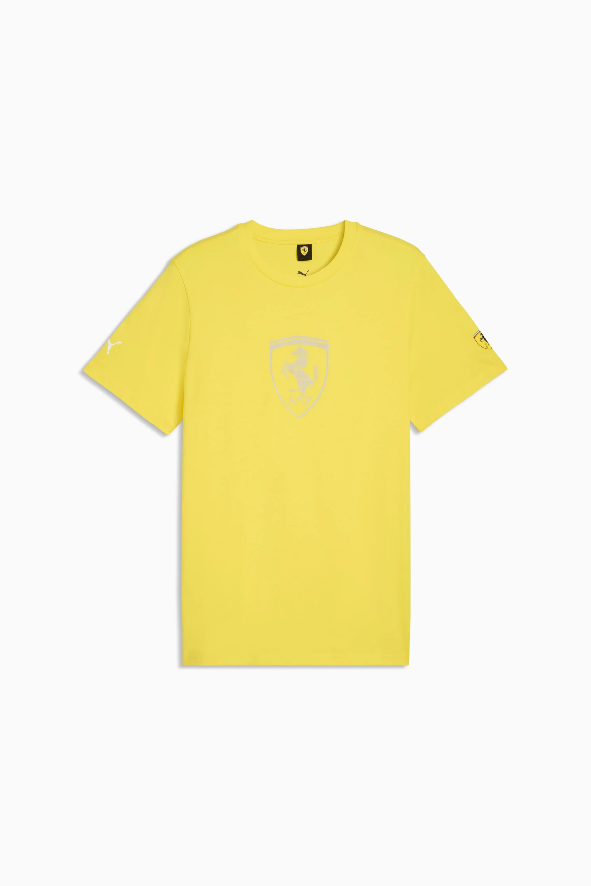 PRODUCT STORY The PUMA and Scuderia Ferrari collection is a tribute to motorsport excellence and Ferrari's legendary racing heritage. This range of shoes, clothes, and accessories combines style, comfort, and performance with the iconic Scuderia Ferrari colours and details, so you can embrace the Ferrari legacy wherever you go. This tee channels Scuderia heritage with a bold print on the chest and a shield logo on the sleeve. FEATURES & BENEFITS - Made with at least 20% recycled cotton. DETAILS - Style: 635311_03 - Color: Speed Yellow - Fit: Regular - Main material type: Single jersey - Neck: Crew neck - Short sleeves - Length: Regular MATERIAL INFORMATION - Shell: 100% cotton - Rib: 75% cotton, 25% polyester