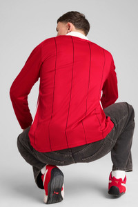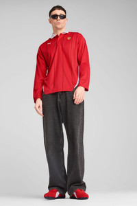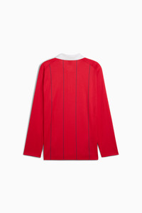 PRODUCT STORY Embrace the fusion of tradition and innovation with this sleek long-sleeve polo. Featuring a pinstripe print, colorblock details, and iconic Scuderia Ferrari and PUMA Cat logos, it's designed for those who live life in the fast lane. FEATURES & BENEFITS - Made with at least 90% recycled materials DETAILS - Style: 631265_02 - Color: Rosso Corsa - Relaxed fit - Main material: Double face jacquard - Regular length - White rib collar - Button placket - Long sleeves MATERIAL INFORMATION - SHELL: 100% polyester - RIB: 94% polyester, 6% elastane
