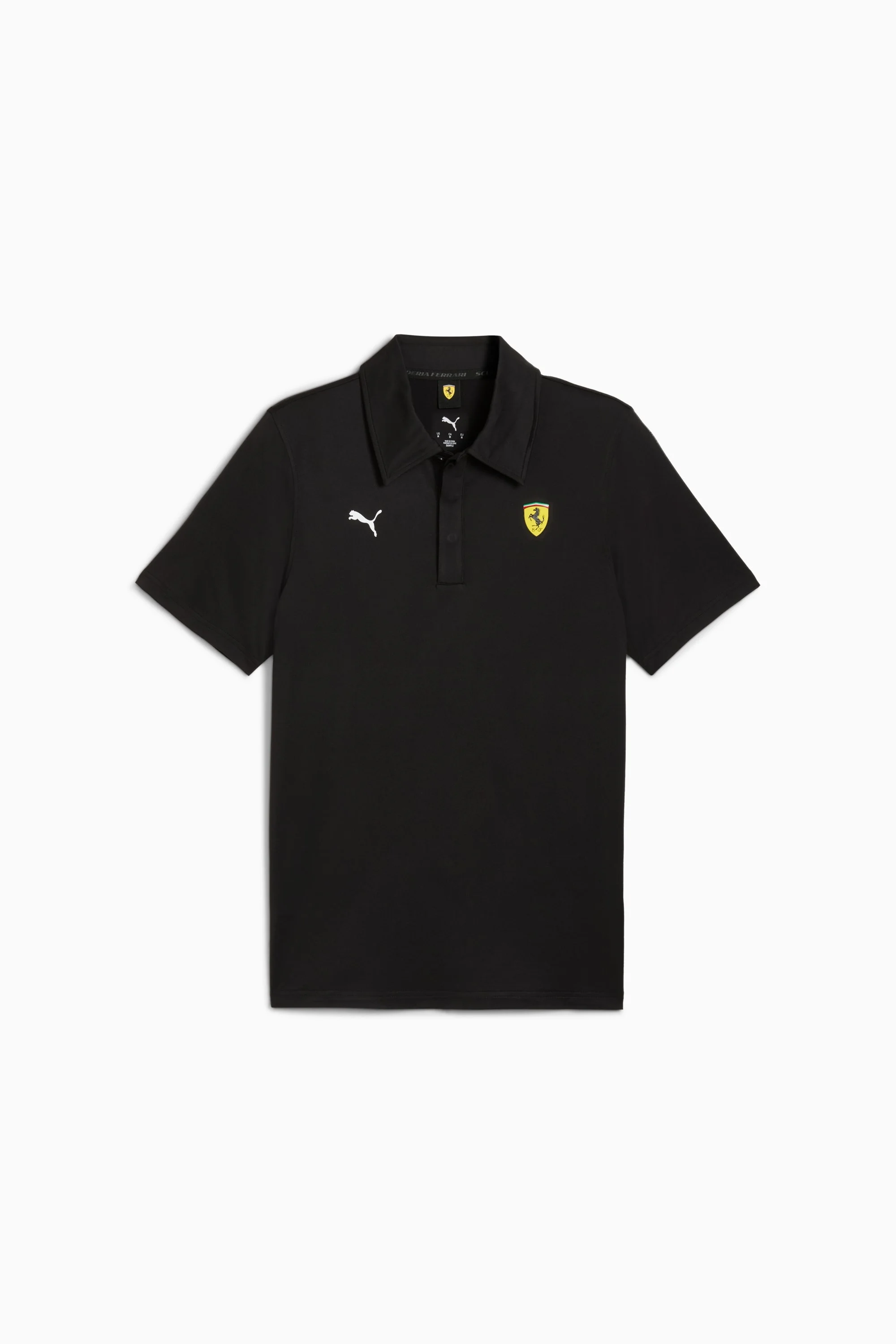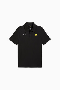 PRODUCT STORY The PUMA and Scuderia Ferrari collection celebrates motorsport excellence and Ferrari's legendary racing legacy. This lineup of shoes, clothing, and accessories blends style, comfort, and performance with the signature Scuderia Ferrari colors and details, letting you carry the Ferrari heritage with you wherever you go. FEATURES & BENEFITS - CLOUDSPUN: Custom-milled performance poly/spandex blend, this fabric meets the highest performance standards while still feeling like an ultra soft cotton - Made with at least 90% recycled materials. DETAILS - Style: 632782_01 - Color: PUMA Black - Fit: Regular - Main material: Single jersey - Neck: Collar - Short sleeves - Fastener: Button placket - Length: Regular - Scuderia Ferrari and PUMA branding details MATERIAL INFORMATION - Shell: 93% polyester, 7% elastane