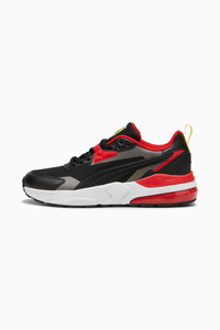 PRODUCT STORY Taking inspiration from our PUMA archives through materials and color blocking, the Vis2k is a mix of mesh and synthetics, color blocked with heritage Scuderia Ferrari and PUMA colors. The midsole is a soft EVA, and there's a transparent TP clip highlight you won't miss. FEATURES & BENEFITS - SOFTFOAM+: Step-in comfort sockliner designed to provide soft cushioning thanks to its extra thick heel - The upper of the shoes is made with at least 20% recycled materials and the bottom is made with at least 10% recycled materials. - The upper of the shoes is made with at least 20% recycled materials. DETAILS - Style: 308296_03 - Color: PUMA Black-Rosso Corsa-Puma Aged Silver - Outsole: 100% rubber - Midsole: Injected mold EVA midsole and visible technology heel bubble - Upper: Mesh with synthetic details - Neoprene bootie construction - Closure: Laces - Rounded toe MATERIAL INFORMATION - Midsole: 100% Synthetic - Sockliner: 100% Textile - Outsole: 100% Rubber - Upper: 72.02% Synthetic, 27.98% Textile - Lining: 100% Textile