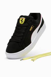 PRODUCT STORY This larger-than-life remix of the iconic Suede Classic has been blazing its own path. The Suede XL draws from PUMA's Y2K-inspired styles while retaining classic Suede DNA. But there's a twist. With its extra padding, extra-large tongue, and extra-thick laces, Suede XL maximizes everything. This execution celebrates Scuderia Ferrari and features the colors and insignia from the racing legends. DETAILS - Style: 308220_01 - Color: PUMA Black-PUMA White - Suede upper - Leather Formstrip - Mesh lining - Mesh sockliner - Rubber midsole - Rubber outsole - Scuderia Ferrari branding MATERIAL INFORMATION - Sockliner: 100% Textile - Outsole: 100% Rubber - Upper: 80.73% Leather - cow, 19.27% Synthetic - Lining: 100% Textile
