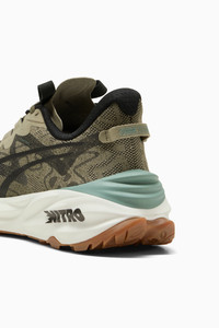 PRODUCT STORY Introducing the PUMA Fast-Trac 3, the ultimate low-profile trail running companion. Featuring a full-length NITROFOAM™ midsole for responsive cushioning, 4mm PUMAGRIP ATR lugs for unbeatable traction, and a comfortable rolled collar upper, this shoe will elevate your trail running experience. Conquer any terrain with confidence in the PUMA Fast-Trac NITRO™ 3. FEATURES & BENEFITS - The upper of the shoes is made with at least 30% recycled materials - NITROFOAM™: Advanced nitrogen-infused foam designed to provide superior responsiveness and cushioning in a lightweight package - PUMAGRIP ATR: Trail-ready performance rubber compound designed for traction on ice, mud, and unstable surfaces - PWRTAPE: Targeted upper reinforcement for support and durability DETAILS - Style: 379786_15 - Color: Loden Green-PUMA Black - Regular fit - Engineered mesh upper - Updated running last - Heel-to-toe drop: 8mm - Recommended for: neutral pronators - Lifespan: 800km MATERIAL INFORMATION - Sockliner: 100% Synthetic - Outsole: 100% Rubber - Upper: 73.57% Textile, 26.43% Synthetic - Lining: 100% Textile