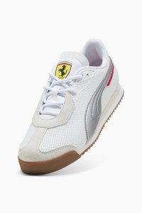 PRODUCT STORY The PUMA and Scuderia Ferrari collection pays homage to motorsport excellence and Ferrari's legendary racing heritage. This lineup of shoes, clothing, and accessories blends style, comfort, and performance with the iconic Scuderia Ferrari colors and details, letting you celebrate the Ferrari legacy wherever you go. FEATURES & BENEFITS - The upper of the shoes is made with at least 20% recycled materials. DETAILS - Style: 308909_02 - Color: PUMA White-Puma Aged Silver - Width: Regular - Toe Type: Rounded - Fastener: Laces - Padded tongue - Heel type: Flat - Scuderia Ferrari and PUMA branding details MATERIAL INFORMATION - Sockliner: 100% Textile - Outsole: 100% Rubber - Upper: 84.76% Synthetic, 12.95% Leather - cow, 2.29% Textile - Lining: 100% Textile