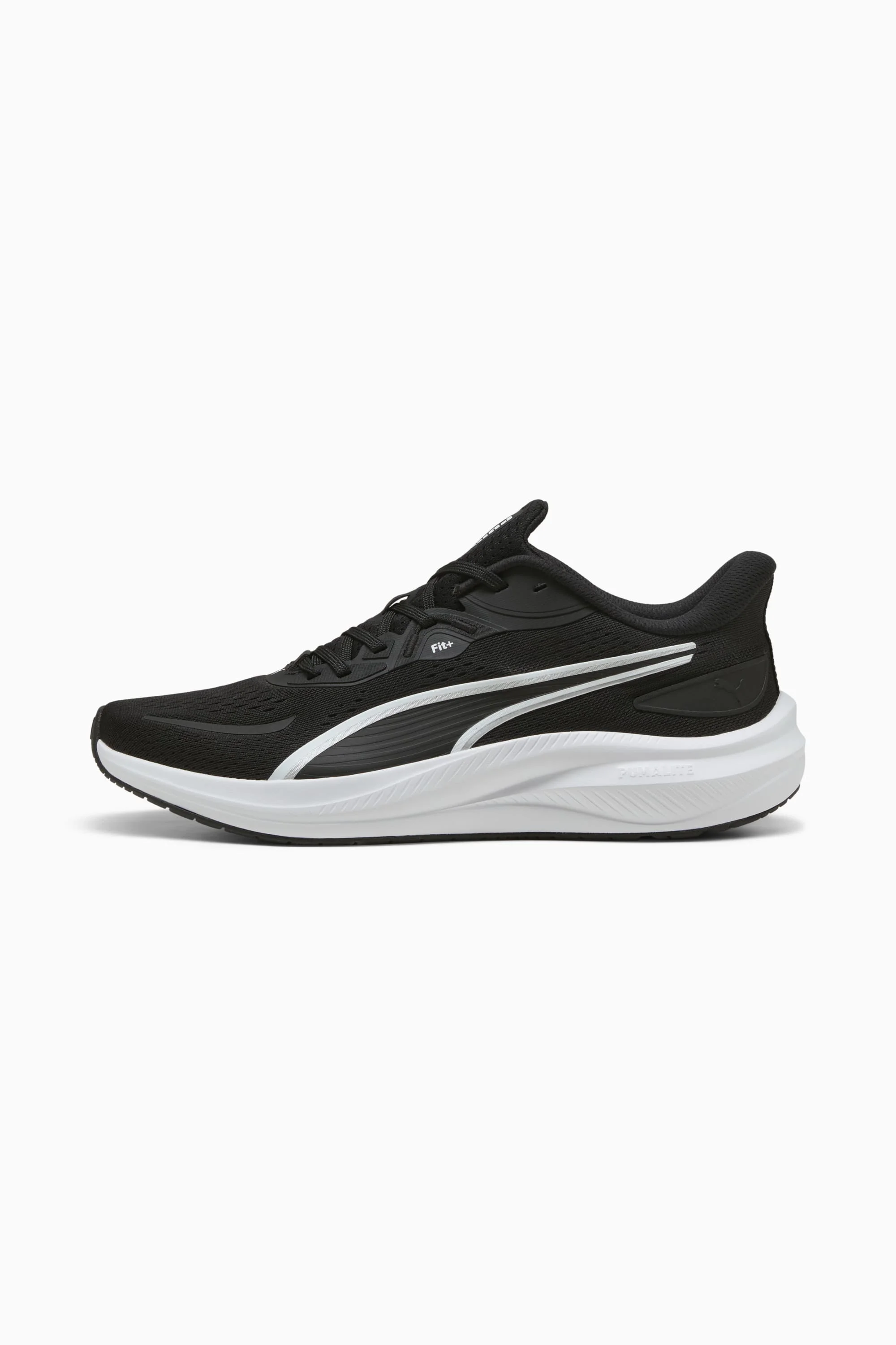 PRODUCT STORY Hit the pavement and get your steps in with Skyrocket Lite. Power through with ultra-lightweight PUMALITE cushioning and SOFTFOAM+ for a plush feel. The FIT PLUS lacing system locks you in, while full-length rubber ensures grip mile after mile. Built for the road, these trainers deliver comfort in every stride. FEATURES & BENEFITS - SOFTFOAM+: Step-in comfort sockliner designed to provide soft cushioning thanks to its extra thick heel DETAILS - Style: 311730_01 - Color: PUMA Black-PUMA White-PUMA Silver - Width: Regular - Toe Type: Rounded - Fastener: Laces - Main material of upper: Textile - Outsole: Rubber - Lining: Textile - Cushioning: Medium - Heel-to-toe drop: 10mm - Pronation: Neutral MATERIAL INFORMATION - Midsole: 100% Synthetic - Sockliner: 100% Textile - Outsole: 82.10% Rubber, 17.90% Synthetic - Upper: 59.48% Textile, 40.52% Synthetic - Lining: 100% Textile