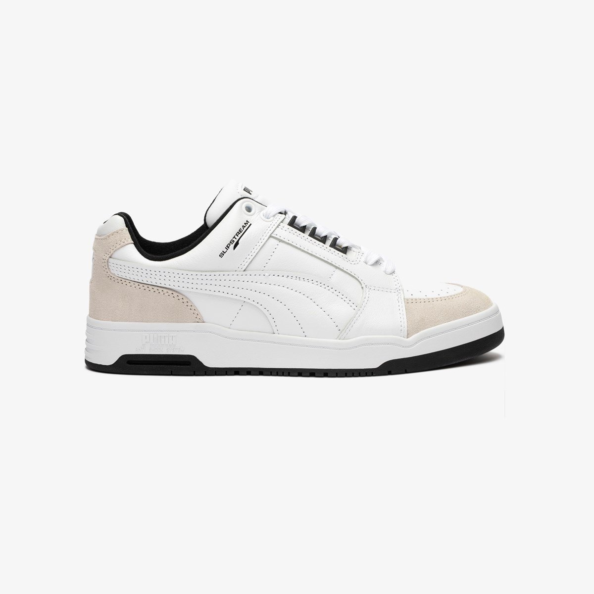 The Puma Slipstream Lo was once a basketball sneaker in 1987 with re-releases in the 2000s and now it returns with a modern update. Crafted with a plush leather and suede overlays the low-top retro sneaker sports a contrasting midsole. - Puma Slipstream Lo Retro Puma White-Vaporous Gray - Leather upper - Suede PUMA Formstrip - Suede heel counter and toe overlay - Textile lining - Rubber midsole and outsole for grip - Rubber outsole Article no. 384692-05 Gender: UNISEX Color: Puma White-Vaporous Gray