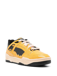 Slipstream low-top sneakers Highlights - Yellow/black - Calf leather - Perforated detailing - Logo patch at the tongue - Round toe - Front lace-up fastening - Branded insole - Contrasting branded heel counter - Flat rubber sole Made in Italy Composition Lining: Fabric 100% Outer: Calf Leather 100% Sole: Rubber 100% SIZE & FIT Measurement HEEL 1.57 in(4 cm) Sole height 0.98 in(2.5 cm)