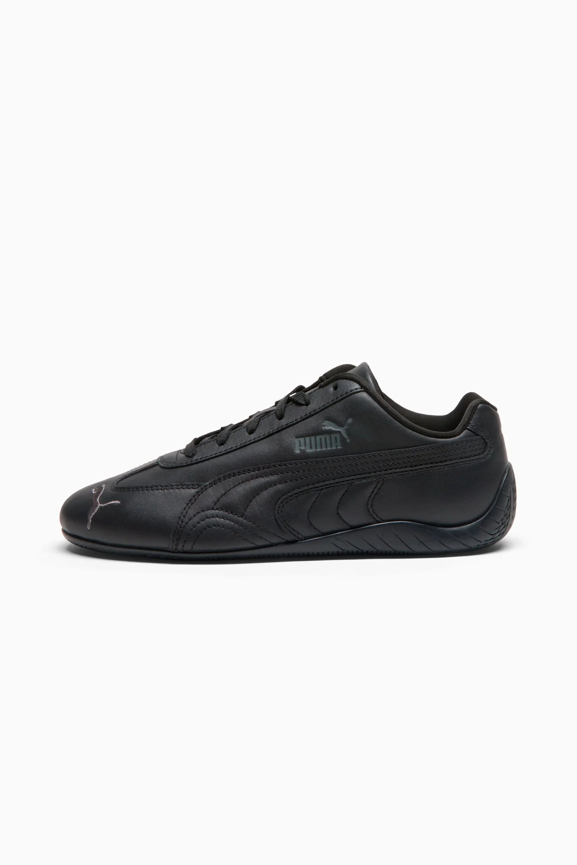 PRODUCT STORY The PUMA Speedcat has been an icon of racing culture and street style for decades. Originally known as an ultra-slim driving shoe designed to shave milliseconds off lap times, it later became a sleek streetwear staple spotted on the streets of global fashion capitals. Its story continues to evolve as it's embraced by trendsetters and pace-setters of every generation. DETAILS - Style: 405449_01 - Color: PUMA Black-Shadow Gray - Width: Regular - Toe Type: Rounded - Fastener: Laces - Heel type: Flat - Lining: Textile - Outsole: Rubber MATERIAL INFORMATION - Sockliner: 100% Textile - Outsole: 100% Rubber - Upper: 97.42% Leather - cow, 2.58% Textile - Lining: 100% Textile