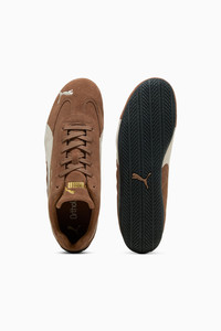 PRODUCT STORY An icon of racing culture, the PUMA Speedcat has been synonymous with speed, precision, and unparalleled performance for over 25 years. It originated as a fireproof Formula 1® footwear style, but over the decades it found itself on a new circuit – transcending the tracks of Monaco for the streets of global fashion capitals. Wrapped in soft suede and premium leather, this silhouette is reissued in its original red and black colorways with a new PUMA Cat Logo at the front. FEATURES & BENEFITS - IMEVA: PUMA's material for a lightweight and comfortable feel - PUMA's leather products support responsible manufacturing via the Leather Working Group. www.leatherworkinggroup.com DETAILS - Style: 398846_31 - Color: Haute Coffee-Frosted Ivory - Leather upper - Rubber midsole - Rubber outsole - Suede PUMA Formstrip - PUMA Cat embroidered on the toe MATERIAL INFORMATION - Sockliner: 100% Textile - Outsole: 100% Rubber - Upper: 97.82% Leather - cow, 2.18% Textile - Lining: 100% Textile