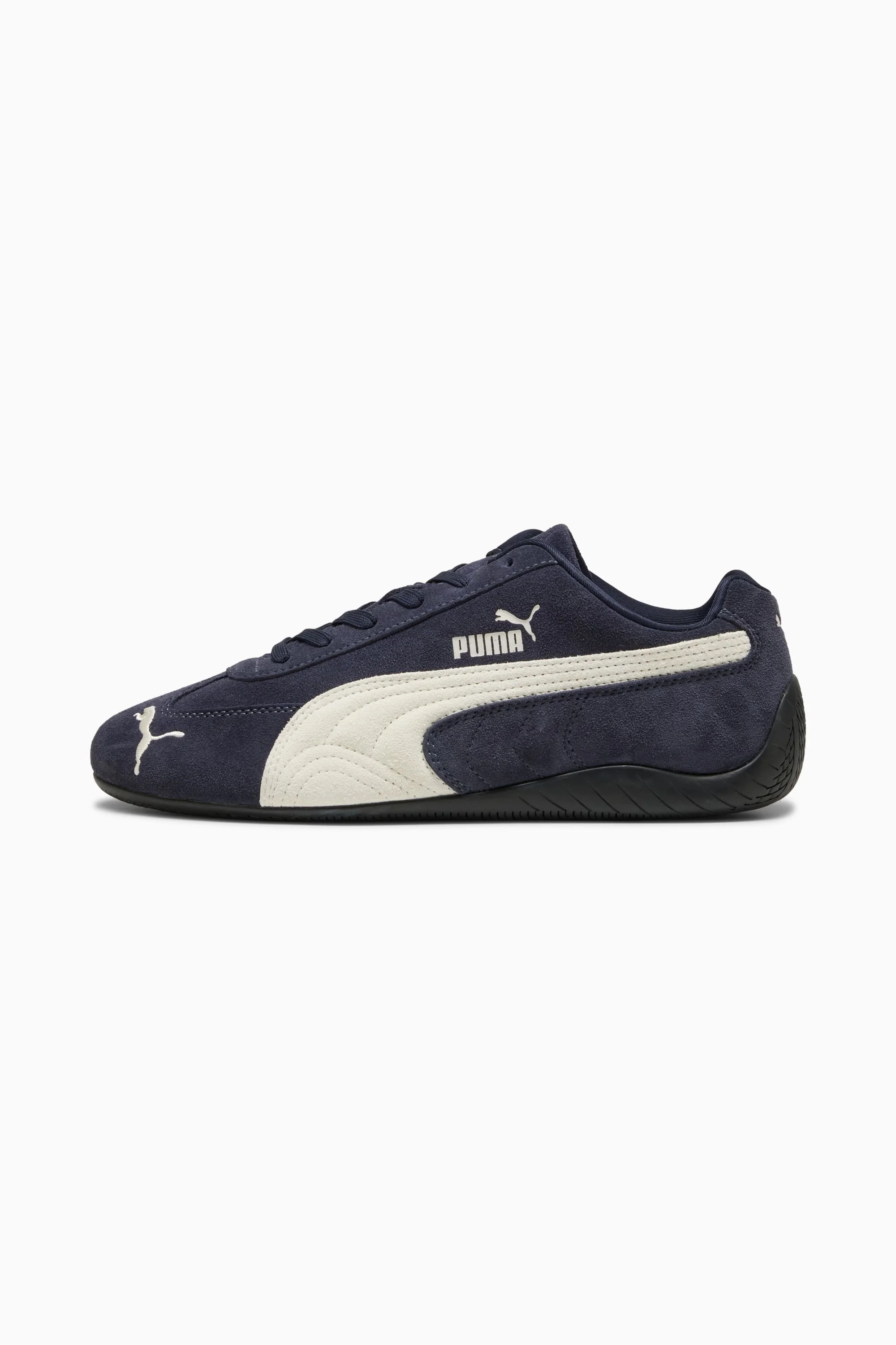 PRODUCT STORY An icon of racing culture, the PUMA Speedcat has been synonymous with speed, precision, and unparalleled performance for over 25 years. It originated as a fireproof Formula 1® footwear style, but over the decades it found itself on a new circuit – transcending the tracks of Monaco for the streets of global fashion capitals. Wrapped in soft suede and premium leather, this silhouette is reissued in its original red and black colorways with a new PUMA Cat Logo at the front. FEATURES & BENEFITS - IMEVA: PUMA's material for a lightweight and comfortable feel - PUMA's leather products support responsible manufacturing via the Leather Working Group. www.leatherworkinggroup.com DETAILS - Style: 398846_38 - Color: New Navy-Warm White - Leather upper - Rubber midsole - Rubber outsole - Suede PUMA Formstrip - PUMA Cat embroidered on the toe