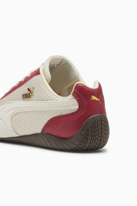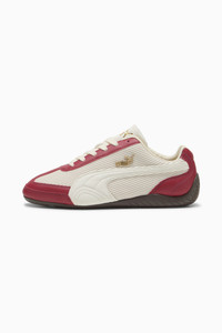 PRODUCT STORY The PUMA Speedcat has been an icon of racing culture and street style for decades. The world first recognized it as an ultra-slim driving shoe designed to shave milliseconds off lap times. It later became a sleek streetwear staple spotted on the streets of global fashion capitals. Its story continues to evolve as it's embraced by the trendsetters and pace-setters of every generation. DETAILS - Style: 403660_02 - Color: Dark Crimson-Warm White - Width: Regular - Toe Type: Rounded - Fastener: Laces - Textile base with ridge texture and leather overlays - Heel type: Flat - Lining: Synthetic - OrthoLite® footbed - Outsole: Rubber MATERIAL INFORMATION - Sockliner: 100% Textile - Outsole: 100% Rubber - Upper: 60.63% Leather - cow, 37% Textile, 2.37% Synthetic - Lining: 73.08% Textile, 26.92% Synthetic