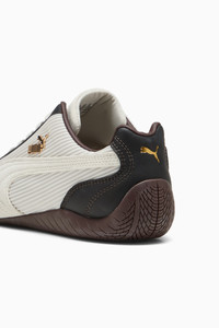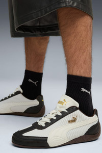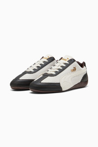 PRODUCT STORY The PUMA Speedcat has been an icon of racing culture and street style for decades. The world first recognized it as an ultra-slim driving shoe designed to shave milliseconds off lap times. It later became a sleek streetwear staple spotted on the streets of global fashion capitals. Its story continues to evolve as it's embraced by the trendsetters and pace-setters of every generation. DETAILS - Style: 403660_01 - Color: PUMA Black-Warm White - Width: Regular - Toe Type: Rounded - Fastener: Laces - Textile base with ridge texture and leather overlays - Heel type: Flat - Lining: Synthetic - OrthoLite® footbed - Outsole: Rubber MATERIAL INFORMATION - Sockliner: 100% Textile - Outsole: 100% Rubber - Upper: 60.63% Leather - cow, 37% Textile, 2.37% Synthetic - Lining: 73.08% Textile, 26.92% Synthetic