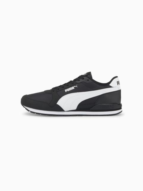 The timeless, legendary design of the ST Runner gets an update, with subtle tweaks to the upper and heel clip breathing a breath of fresh air into this sneakers classic style. Choose from mesh, full leather and nylon finishes for a versatile, dynamic look that’s ready to hit the streets. Best of all, the SoftFoam+ sockliner guarantees supreme cushioning and comfort with every step you take. FEATURES & BENEFITS - CMEVA: PUMA's compression-moulded EVA material for lightweight performance - SoftFoam+: PUMA's comfort sockliner for instant step-in and long-lasting comfort that provides soft cushioning every step of your day DETAILS - Style: 384855_10 - Color: Puma White-Puma White-Gray Violet - Low boot - SoftFoam+ sockliner - CMEVA midsole - Rubber outsole - Lace closure for a snug fit - Update to the timeless, legendary design of the ST Runner - PUMA No. 1 Logo at tongue - PUMA No. 2 Logo at lateral side - PUMA Formstrip at lateral side MATERIAL INFORMATION - Midsole: 100% Synthetic - Sockliner: 100% Textile - Outsole: 100% Rubber - Upper: 56.02% Leather - cow, 43.98% Synthetic - Lining: 100% Textile