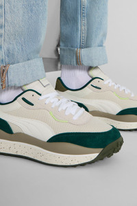 PRODUCT STORY Vintage vibes meet modern flair with PUMA's latest kicks, Style Rider Mix. Featuring a textile upper, suede and synthetic overlays, and TPU Gel details, these sneakers are all about bold style. Zig-zag stitching and Federbein outsole complete the look, making every step an adventure. DETAILS - Style: 403528_01 - Color: Warm White-Alpine Snow-Velvet Moss - Low boot - Lace closure - Regular fit - Rubber outsole - PUMA branding details MATERIAL INFORMATION - Midsole: 100% Synthetic - Sockliner: 100% Textile - Outsole: 100% Rubber - Upper: 51% Leather - cow, 29% Textile, 20% Synthetic - Lining: 100% Textile