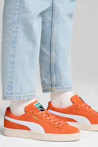 PRODUCT STORY The Suede hit the scene in 1968 and has been changing the game ever since. It's been worn by icons of every generation, and it's stayed classic through it all. Instantly recognisable and constantly reinvented, Suede's legacy continues to grow and be legitimised by the authentic and expressive individuals that embrace the iconic shoe. This version features a suede leather base with a leather PUMA Formstrip. FEATURES & BENEFITS - PUMA's leather products support responsible manufacturing via the Leather Working Group. www.leatherworkinggroup.com DETAILS - Style: 399781_17 - Color: Maple Syrup-Frosted Ivory - Leather upper - Suede leather heel overlay and tongue - Synthetic lining - Mesh sockliner - Rubber midsole - Rubber outsole - PUMA branding details - Lining: 72.44% Textile, 27.56% Synthetic; Outsole: 100% Rubber; Upper: 97.36% Cow Leather, 2.74% Synthetic; Sockliner: 100% Textile MATERIAL INFORMATION - Sockliner: 100% Textile - Outsole: 100% Rubber - Upper: 97.26% Leather - cow, 2.74% Synthetic - Lining: 100% Textile