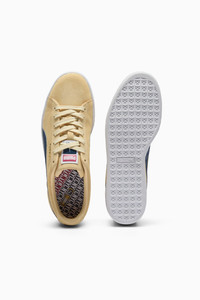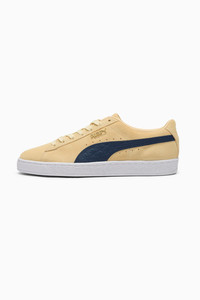 PRODUCT STORY A PUMA classic since 1968, the Suede is an undisputable legend. Hitting the streets in red, white and blue, with a debossed star print on the Formstrip and liberty emblem at the heel, this Suede is an all-American icon. DETAILS - Style: 375549_04 - Color: Chamomile-Club Navy-Puma Team Gold - Classic Suede silhouette - Full suede upper with colorblocked panels - Rubber midsole and outsole for durable traction - PUMA Formstrip overlay with debossed star print - Heel cap with liberty emblem - Gold metal PUMA No.2 Logo at lateral side - PUMA label at tongue MATERIAL INFORMATION - Midsole: 100% Rubber - Sockliner: 100% Synthetic - Outsole: 100% Rubber - Upper: 100% Leather - cow - Lining: 100% Synthetic