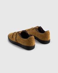 First released in 1968, the PUMA Suede has grown to be one of the most versatile silhouettes of its era and beyond. This particular version arrives as part of the brand's ongoing partnership with Noah and features a smooth, brown upper with a gold foil logo on the velcro straps. A perforated version of PUMA's Formstrip logo is detailed at the quarter while a debossed Noah logo at the heel adds the finishing touches to this timeless style. Size & Fit Order your regular size. Product Details Full suede upper Rubber midsole and outsole Hook and loop fastening Puma Formstrip at the quarter and lateral sides Co-branded logos at the insole Debossed Noah logo at heel