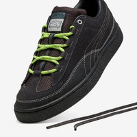 As part of their latest disruptive collection, Puma & Aries introduces a modernized take on an icon from the German footwear brand's rich heritage: the Puma Suede. Coated in plush black suede throughout the upper, the Puma Suede HP, in collaboration with Aries, features an added wavy panel seamlessly blending with the upper and sole unit alongside white contrast stitching and creative co-branded detailing. - Puma Suede HP x Aries - Suede upper - Mesh tongue - Contrast stitching - Rubber outsole Article no. 399347-01 Gender: UNISEX Color: PUMA Black-Flat Dark Gray