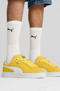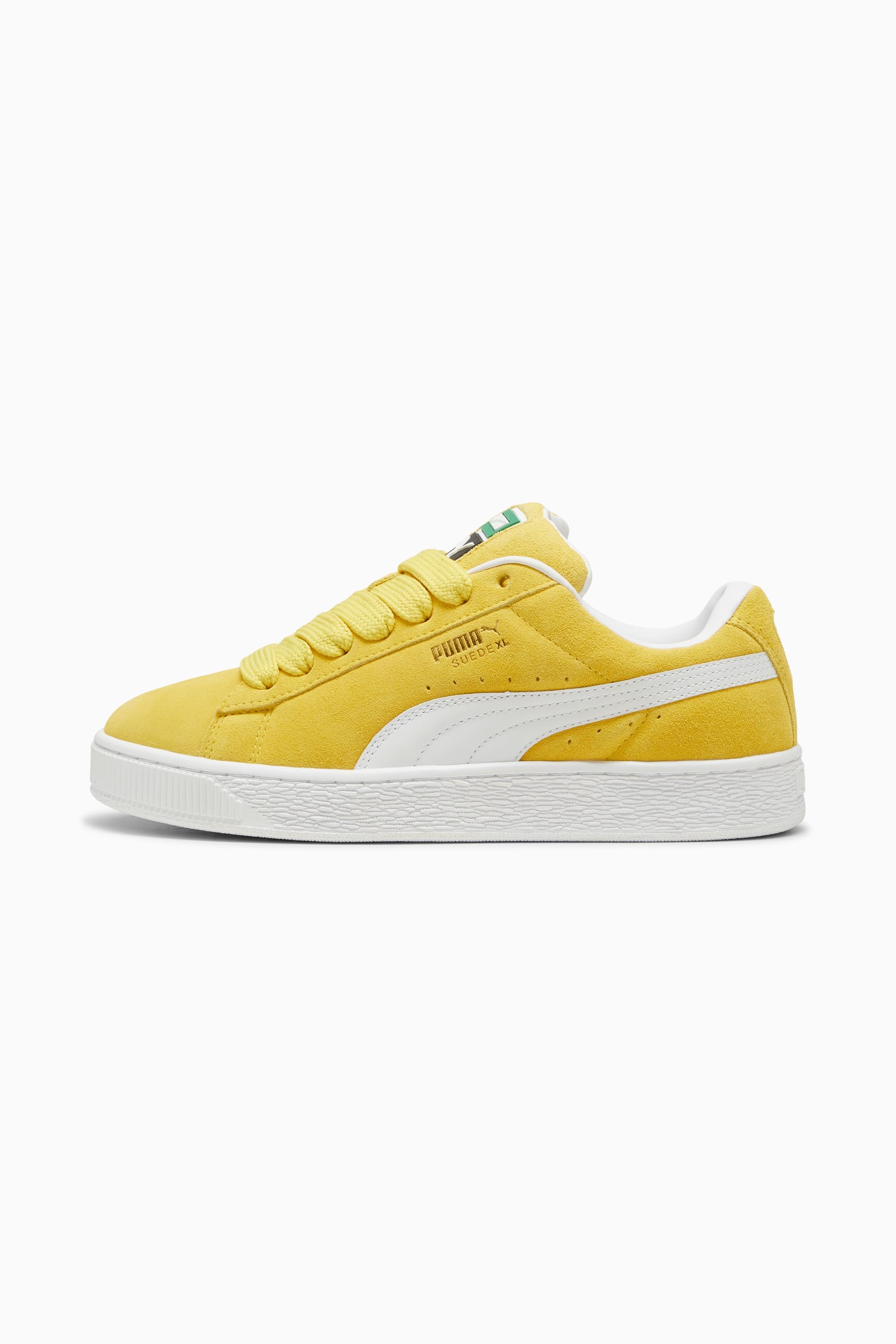 PRODUCT STORY This larger-than-life remix of the iconic Suede Classic has been blazing its own path. The Suede XL draws from PUMA's Y2K-inspired styles while retaining classic Suede DNA. But there's a twist. With its extra padding, extra-large tongue, and extra-thick laces, Suede XL maximizes everything. This sneaker is the perfect mix of understated and elevated. FEATURES & BENEFITS - PUMA’s leather products support responsible manufacturing via the Leather Working Group.www.leatherworkinggroup.com DETAILS - Style: 395205_25 - Color: Fresh Pear-PUMA White - Suede upper - Leather Formstrip - Suede tongue with mesh binding - Debossed and foil-printed PUMA branding on quarter panel - Mesh lining - Mesh sockliner - Rubber midsole - Rubber outsole MATERIAL INFORMATION - Sockliner: 100% Textile - Outsole: 100% Rubber - Upper: 97.21% Leather - cow, 2.79% Synthetic - Lining: 62.81% Textile, 37.19% Synthetic