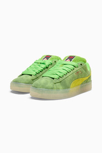 PRODUCT STORY To celebrate the 40th anniversary of the original Ghostbusters, we teamed up with Manhattan’s premier ghost fighting team for this paranormal collab. This Suede XL is designed after one of the most iconic ghosts in the franchise: Slimer. These kicks have a custom tongue graphic, a slime green upper, and a hotdog design on the sole. Perfect for a ghost with no legs. FEATURES & BENEFITS - SOFTFOAM+: Step-in comfort sockliner designed to provide soft cushioning thanks to its extra thick heel DETAILS - Style: 399606_01 - Color: PUMA Green-Lime Smash-Warm White - Suede upper with distressing - Hairy suede form strip - Ghostbusters print on sock liner MATERIAL INFORMATION - Sockliner: 100% Textile - Outsole: 100% Rubber - Upper: 97.20% Leather - cow, 2.80% Textile - Lining: 100% Textile