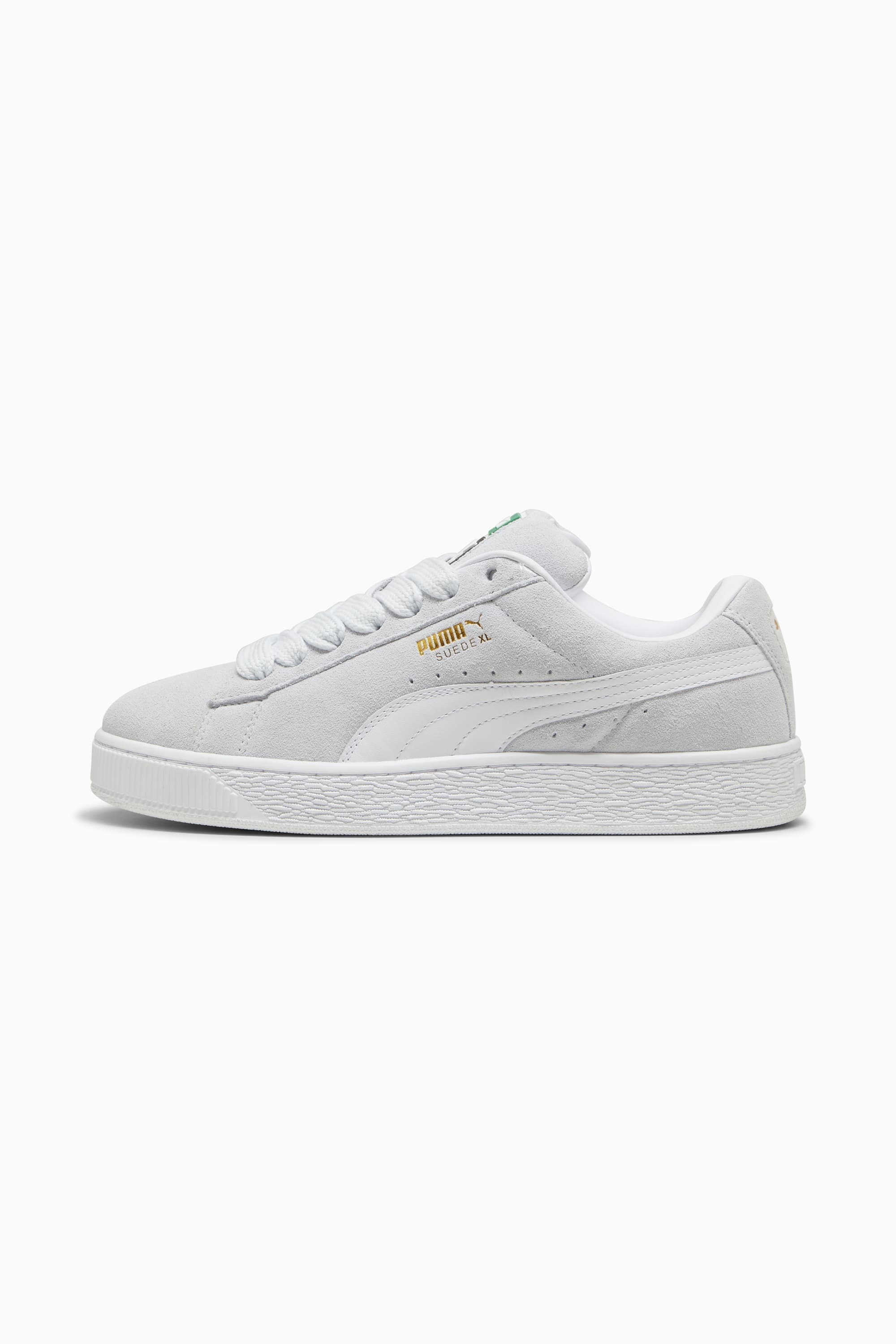 PRODUCT STORY This larger-than-life remix of the iconic Suede Classic has been blazing its own path. The Suede XL draws from PUMA's Y2K-inspired styles while retaining classic Suede DNA. But there's a twist. With its extra padding, extra-large tongue, and extra-thick laces, Suede XL maximizes everything. This sneaker is the perfect mix of understated and elevated. FEATURES & BENEFITS - PUMA’s leather products support responsible manufacturing via the Leather Working Group.www.leatherworkinggroup.com DETAILS - Style: 395205_22 - Color: Silver Mist-PUMA White - Suede upper - Leather Formstrip - Suede tongue with mesh binding - Debossed and foil-printed PUMA branding on quarter panel - Mesh lining - Mesh sockliner - Rubber midsole - Rubber outsole MATERIAL INFORMATION - Sockliner: 100% Textile - Outsole: 100% Rubber - Upper: 97.21% Leather - cow, 2.79% Synthetic - Lining: 62.81% Textile, 37.19% Synthetic