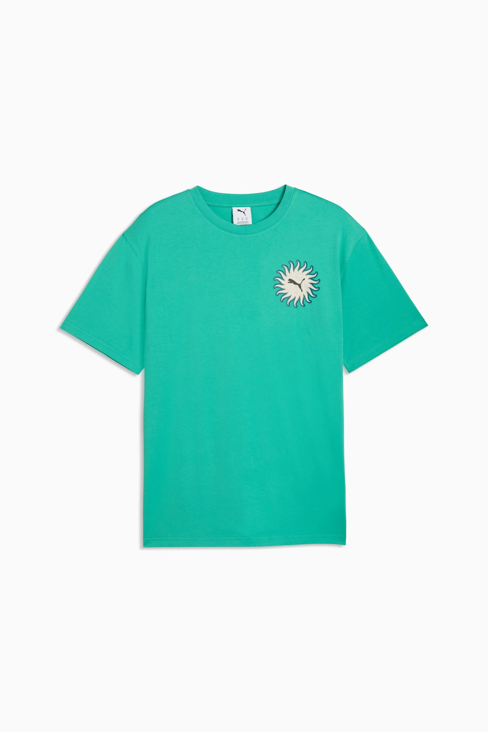 PRODUCT STORY PUMA's collection of Graphic tees blend creative graphics with simple style, creating comfortable pieces that make a statement. From abstract patterns to iconic logos, each design elevates your look with effortless cool. FEATURES & BENEFITS - Made with at least 20% recycled cotton. DETAILS - Style: 634395_40 - Color: Vibrant Green - Fit: Relaxed - Main material type: Single jersey - Neck: Crew neck - Short sleeves - Length: Regular MATERIAL INFORMATION - Shell: 100% cotton - Rib: 80% cotton, 20% polyester