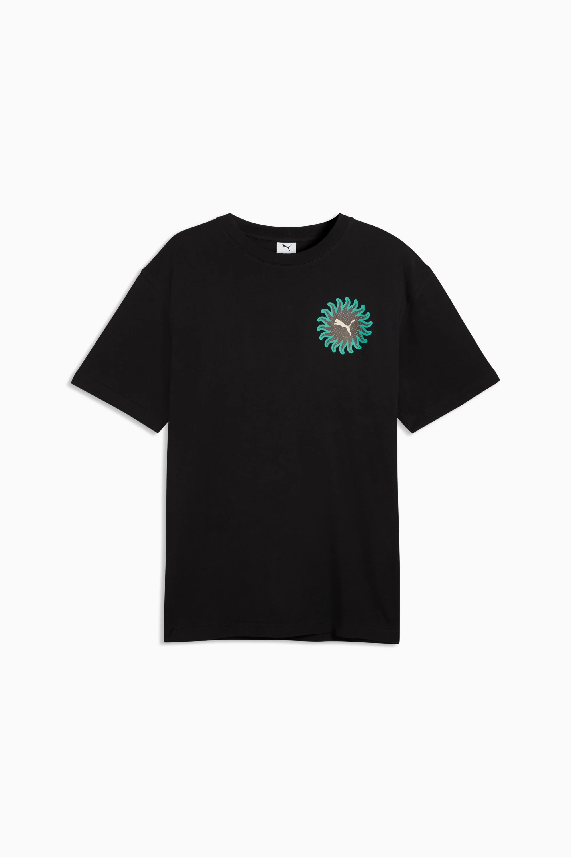 PRODUCT STORY PUMA's collection of Graphic tees blend creative graphics with simple style, creating comfortable pieces that make a statement. From abstract patterns to iconic logos, each design elevates your look with effortless cool. FEATURES & BENEFITS - Made with at least 20% recycled cotton. DETAILS - Style: 634395_01 - Color: PUMA Black - Fit: Relaxed - Main material type: Single jersey - Neck: Crew neck - Short sleeves - Length: Regular MATERIAL INFORMATION - Shell: 100% cotton - Rib: 80% cotton, 20% polyester