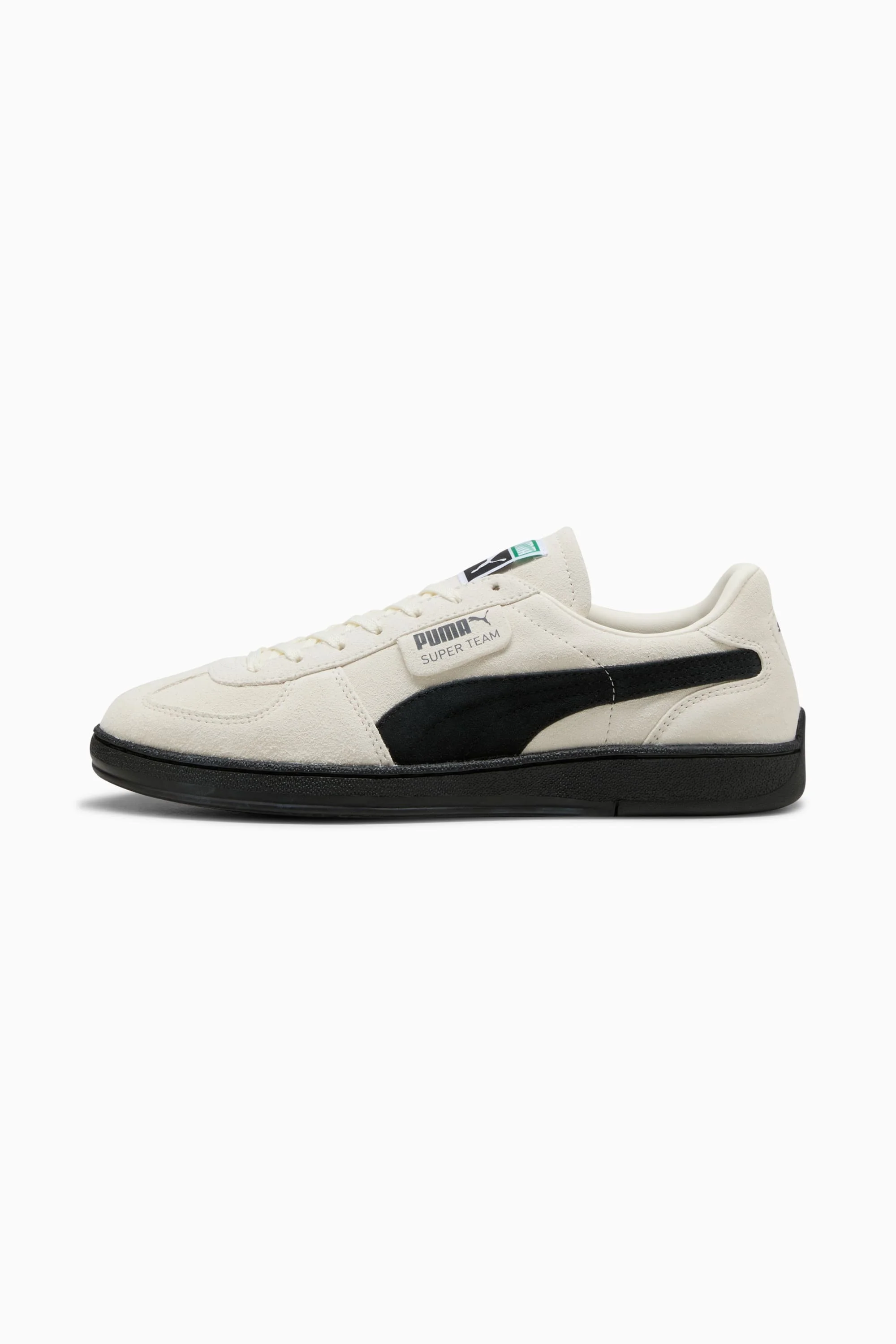 PRODUCT STORY A 1982 classic reborn: the Super Team. Originally crafted for handball goalkeepers, this lifestyle version honors its heritage with features like the gum cupsole and stitching details, now updated with contemporary upgrades. Rediscover the legacy. Embrace the future. The Super Team is back, and it's better than ever. DETAILS - Style: 403171_03 - Color: Warm White-PUMA Black - Width: Regular - Toe Type: Rounded - Fastener: Laces - Heel type: Flat - PUMA branding details