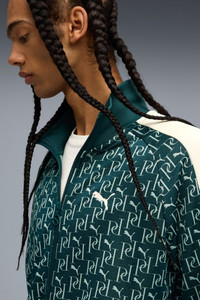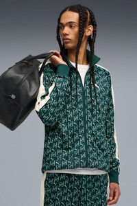 PRODUCT STORY The T7 tracksuit debuted in 1968 and has been redefining style ever since. Today, it remains a timeless streetwear essential, instantly recognizable for its classic cutlines, tapered side panels, and PUMA branding. Now it's back with modern updates and refined details—blending heritage with fresh energy for a new generation. FEATURES & BENEFITS - Made with at least 90% recycled materials. DETAILS - Style: 634315_75 - Color: Green Terrain - Fit: Regular - Main Material: Pique - Neck: Stand up collar - Long sleeves - Fastener: Full zip - Length: Standard jacket - Ribbed cuffs and hem - Pockets: Side Pocket - All-over monogram print - Signature PUMA T7 (7cm) stripes along the sleeves