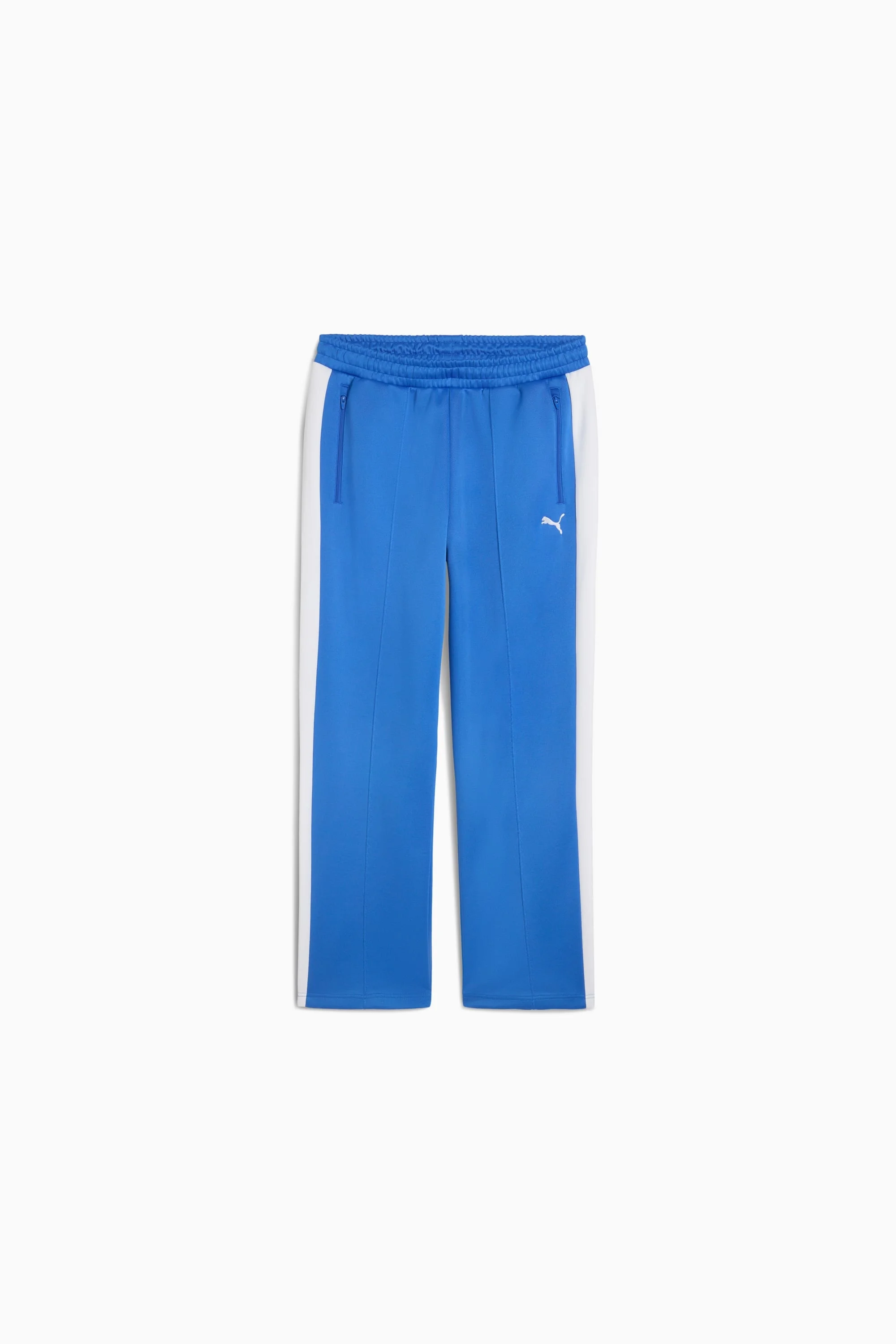 PRODUCT STORY Step up your game with PUMA's relaxed track pants. Featuring iconic T7 stripes, zip pockets, and pintuck stitching, these pants offer a sleek, straight fit. The elasticated waistband with drawcord ensures a perfect fit for every adventure. FEATURES & BENEFITS - Made with at least 50% recycled materials DETAILS - Style: 629589_13 - Color: Mountain Blue - Relaxed fit - Spacer fabric - Regular length - Medium rise - Side Pocket - PUMA branding details MATERIAL INFORMATION - Upper Pocket Bag: 100% cotton - Shell: 67% polyester, 33% cotton - Lower Pocket Bag: 67% polyester, 33% cotton